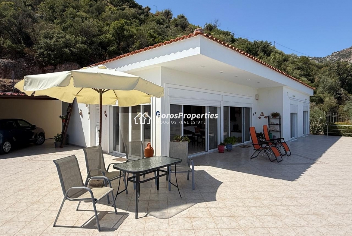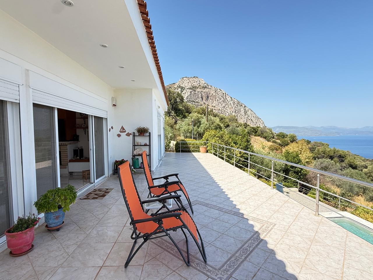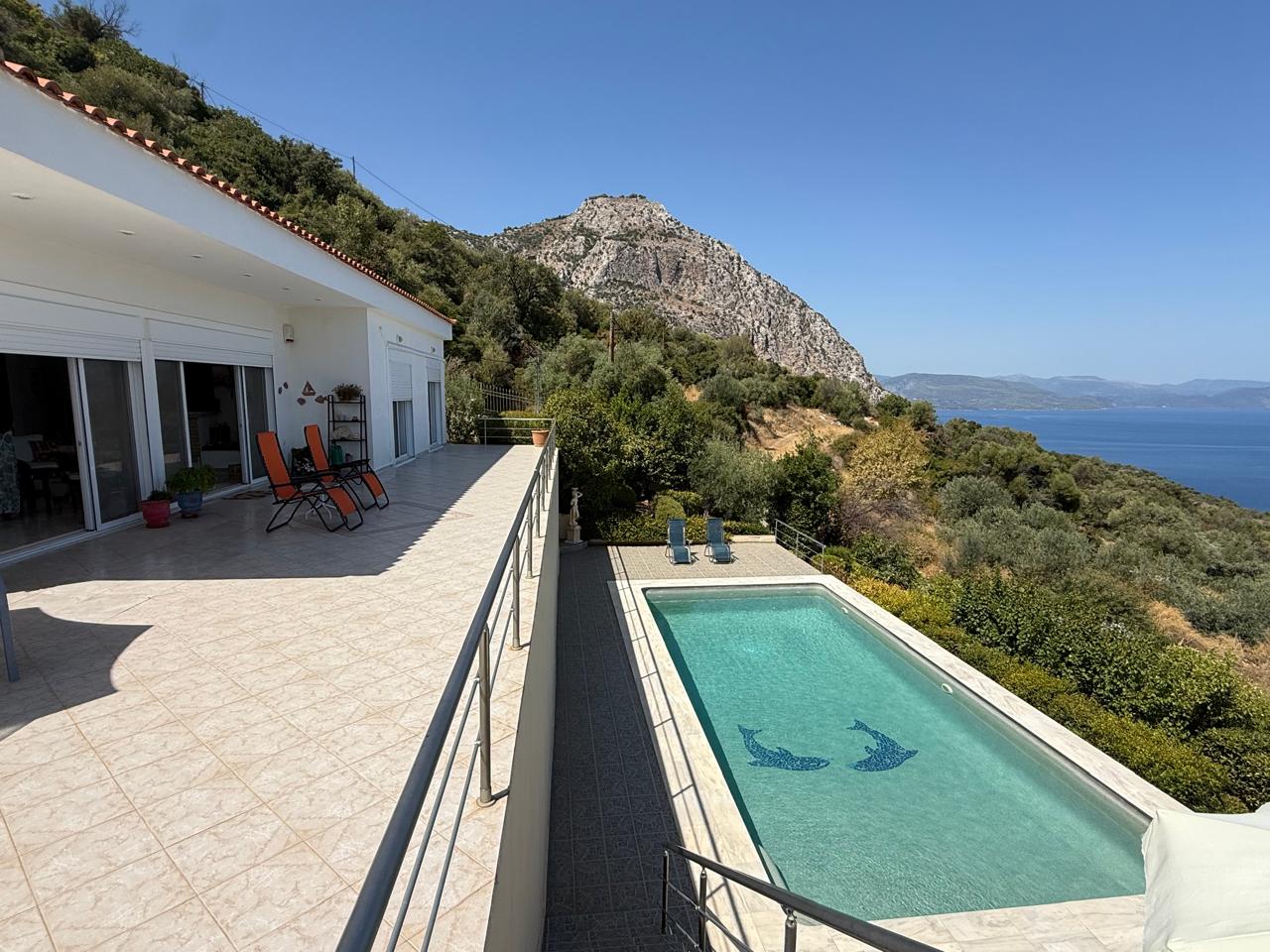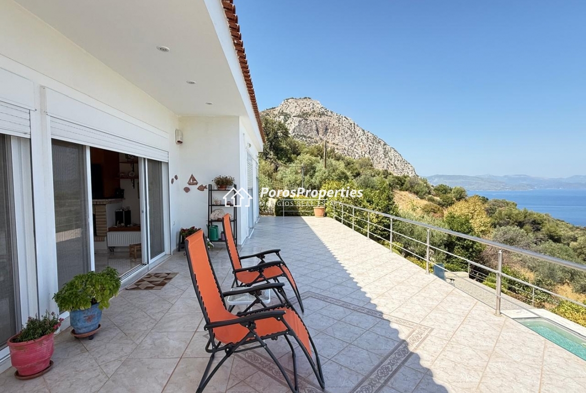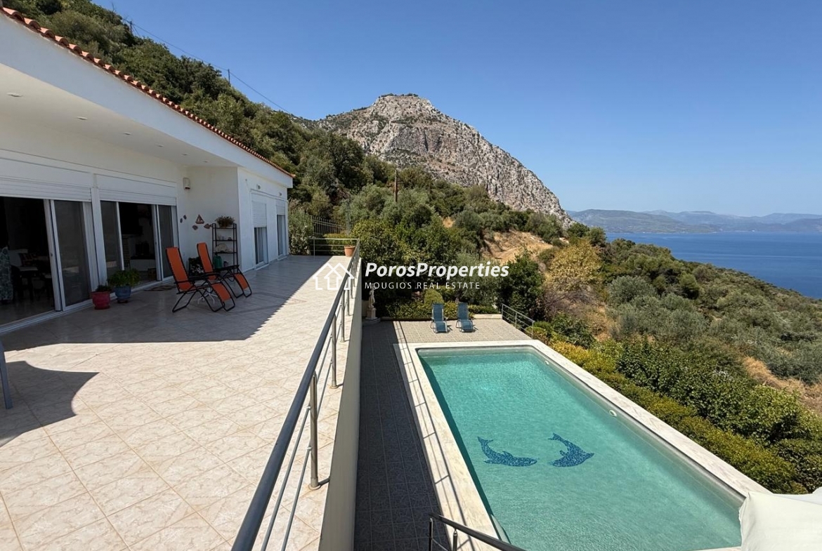 FOR SALE TRIZINIA -PELOPONNESE. Villa with panoramic sea view and pool. Villa of 128 m2 with spacious living area and open plan kitchen with island and dinning area, 2 spacious bedrooms with built in closets and study laundry room which can be converted into a third bedroom, 2 bathrooms. Air-conditioners, radiators, fireplace, shaded parking place, veranda and pool area. There is also extra building ability of 67 m2 more. Big pool with amazing sea view. Land of 4.200 m2. Easy access and 2 picturesque villages at close distance. Many beaches with crystal clear waters at 5-10 minutes drive. Many places to visit at short distances ( Methana peninsula, Epidaurus, Nafplion, Poros island, Porto Cheli, Koildada golf, Hydra island, Argos and many more !). At less than 2 hours drive from Athens International Airport ! Price 680.000 euros. Ref.number #825.