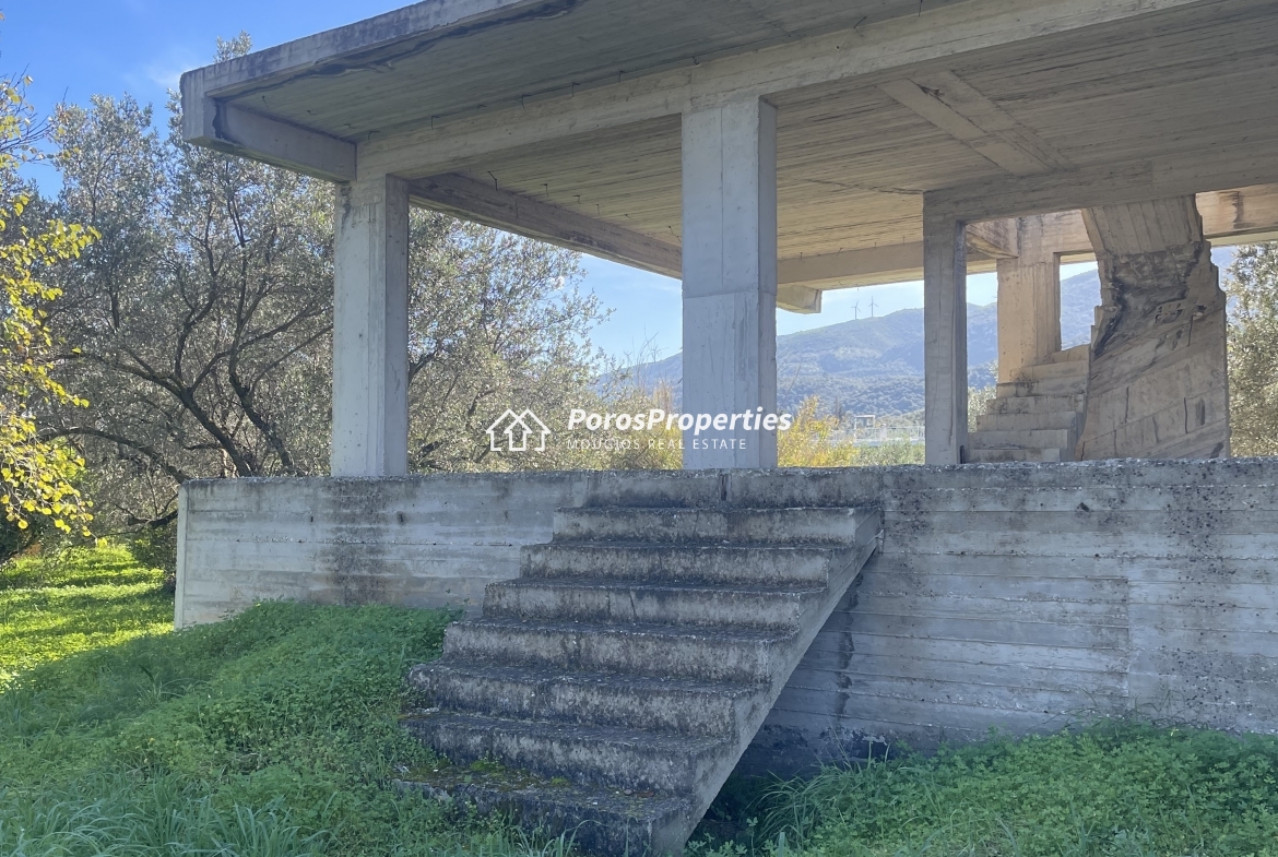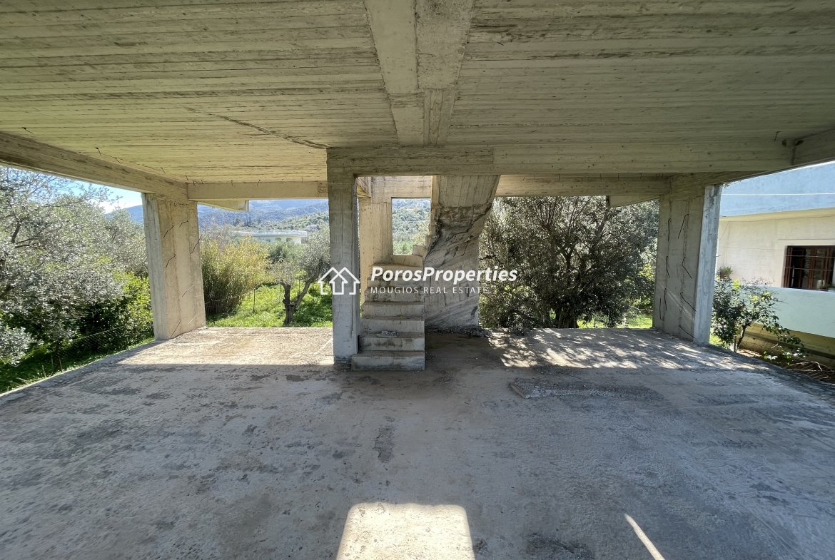 FOR SALE GALATAS / POROS AREA / PELOPONNESE. Plot of 781 m2 with new construction at concrete frame phase – for 2 floor residence of 103 m2 and 76 m2 semi-basement – with valid building permit. Quiet area surrounded by pristine nature, easy access from asphalt road, only 3 minutes drive to Galatas town and 15 minutes to Poros island. Many beaches at about 10 minutes distance, many places to visit at close distances : Methana spa town and Vathi fishing village at 15 minutes drive, Epidaurus town and ancient theater at 30 minutes drive, Nafplion historic town at 40 minutes drive, Hydra island at 30 minutes, Porto Cheli-Ermioni-Koilada golf at 1 hour drive and the rest of the Peloponnese at your feet ! Only 2 hours drive from Athens International Airport. Price 190.000 euros. Ref.number #858.